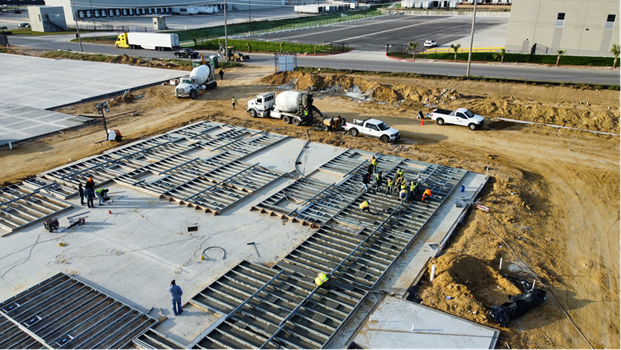 “Our contractors have completed approximately 75% of the yard paving, and exterior concrete wall panels using the ‘Hi-Tech Tilt’ system have been poured and will be erected soon,” said Laurence Cox, PGT Trucking’s Vice President of Sustainability. “We expect to have all the steel superstructure installed before the end of the month and the building completely under roof by the first week in February.”