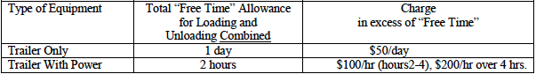 - When shipments are stopped for either partial loading or partial unloading service, or both, one hour free time for each stop will be added to the total “Free Time” allowed.